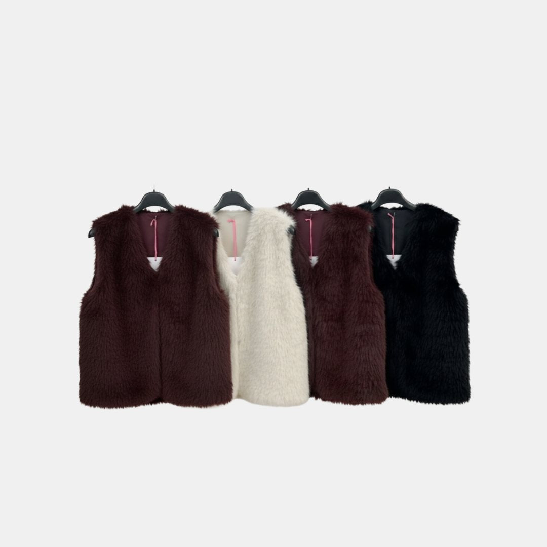 Este chaleco de pelo es el complemento ideal para los días fríos de invierno. Con un diseño elegante y atemporal, aporta calidez y estilo a cualquier look. Su textura suave y agradable lo convierte en una prenda cómoda y muy versátil, perfecta para combinar con jerseys, camisetas o vestidos.